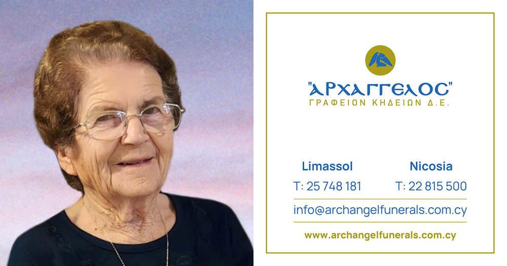 που απεβίωσε την Κυριακή 01.12.2024, σε ηλικία 87 ετών, κηδεύουμε την Τρίτη 03.12.2024 και ώρα 2:30 μ.μ. από τον Ιερό Ναό Αγίων Ανδρονίκου και Αθανασίας στο Τσέρι και καλούμε όσους τιμούν τη μνήμη της να παραστούν.
