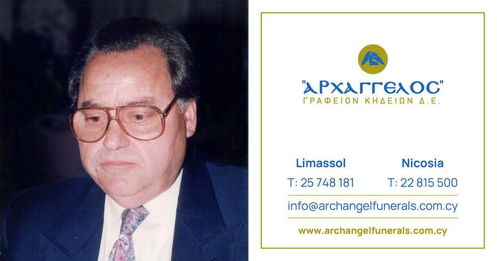 που απεβίωσε το Σάββατο 10.05.2025, σε ηλικία 85 ετών, κηδεύουμε την Τρίτη 13.05.2025 και ώρα 2:00 μ.μ. από τον Ιερό Ναό Αγίου Κοσμά Αιτωλού στη Λεμεσό και καλούμε όσους τιμούν τη μνήμη του να παραστούν.