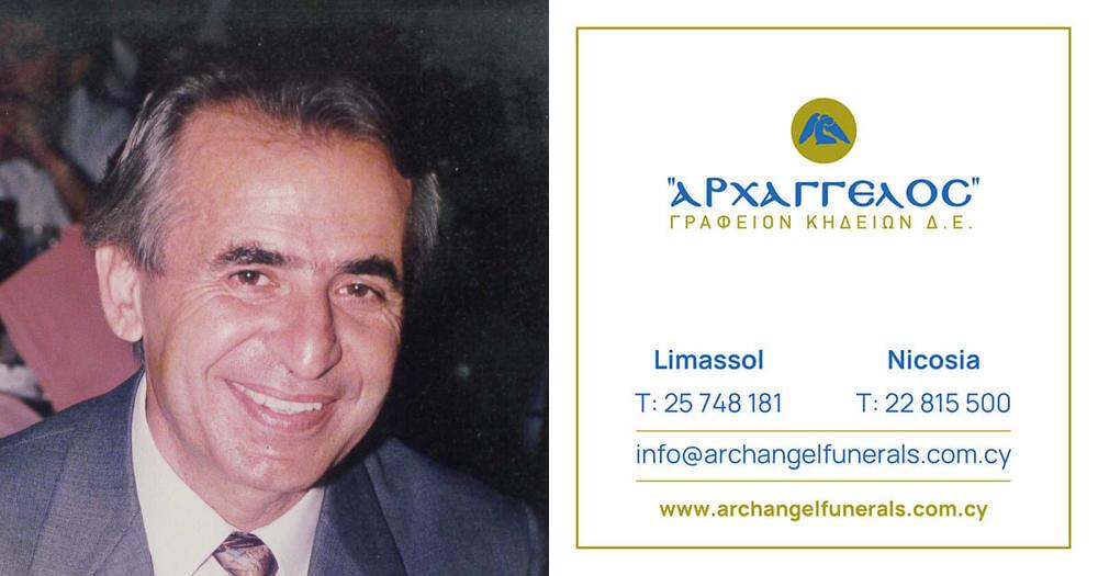 που απεβίωσε την Κυριακή 13.04.2025, σε ηλικία 86 ετών, κηδεύουμε την Τετάρτη 23.04.2025 και ώρα 1:00 μ.μ. από τον Ιερό Ναό Αγίου Νικολάου στη Λεμεσό και καλούμε όσους τιμούν τη μνήμη του να παραστούν.