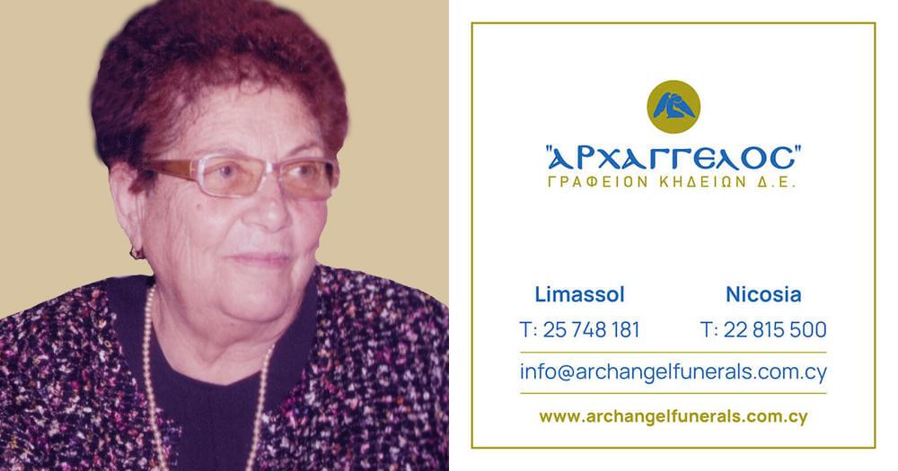 που απεβίωσε τη Δευτέρα 25.08.2025, σε ηλικία 85 ετών, κηδεύουμε την Τετάρτη 27.08.2025 και ώρα 4:00 μ.μ. από τον Ιερό Ναό Παναγίας Χρυσοπολίτισσας στον Ύψωνα, Λεμεσό και καλούμε όσους τιμούν τη μνήμη της να παραστούν.