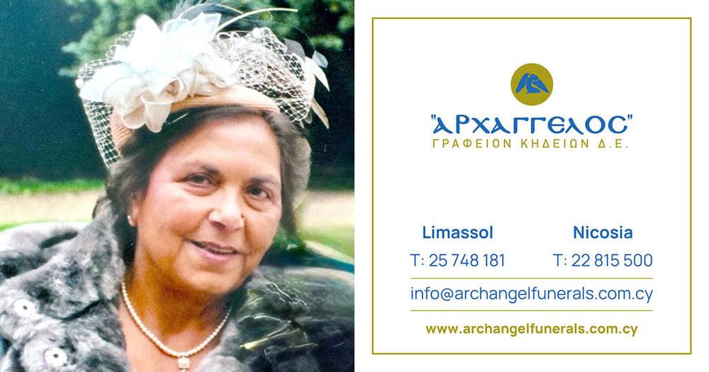 που απεβίωσε στις 29.08.2025 σε ηλικία 83 ετών κηδεύουμε τη Δευτέρα 08.09.2025 και ώρα 5:00 μ.μ. από τον Ιερό Ναό Παναγίας Πυργώτισσας στο Πύργο Λεμεσού και καλούμε όσους τιμούν τη μνήμη της να παραστούν.
