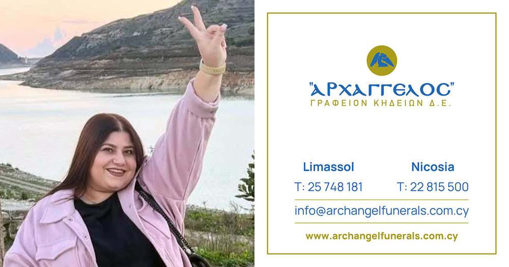 που απεβίωσε την Πέμπτη 13.03.2025, σε ηλικία 28 ετών, κηδεύουμε την Πέμπτη 20.03.2025 και ώρα 3:00 μ.μ. από τον Ιερό Ναό Αγίου Αρσενίου του Καππαδόκου στη Λεμεσό και καλούμε όσους τιμούν τη μνήμη της να παραστούν.