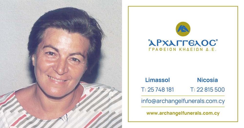 που απεβίωσε την Δευτέρα 28.07.2025, σε ηλικία 90 ετών, κηδεύουμε την Τετάρτη 30.07.2025 και ώρα 10:00 π.μ. από τον Ιερό Ναό Αγίου Νικολάου στη Λεμεσό και καλούμε όσους τιμούν τη μνήμη της να παραστούν.