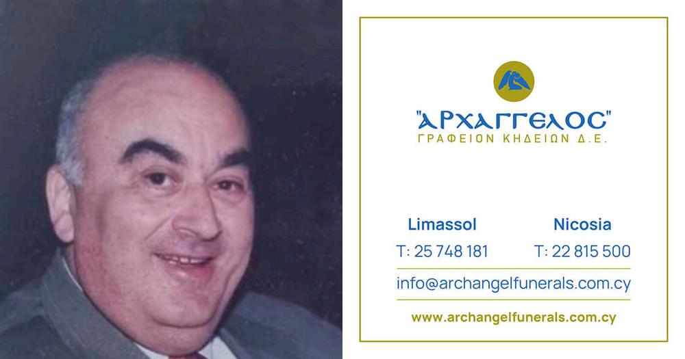 που απεβίωσε την Παρασκευή 02.08.2024, σε ηλικία 79 ετών ,κηδεύουμε την Τετάρτη 07.08.2024 και ώρα 11:00 π.μ. από τον Ιερό Ναό Αγίου Κοσμά του Αιτωλού (κοιμητήριο Σφαλαγγιωτισσας) στη Λεμεσό και καλούμε όσους τιμούν τη μνήμη του να παραστούν.