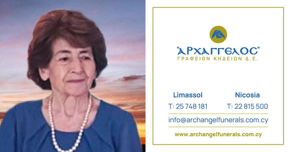 που απεβίωσε στις 10.01.2025, σε ηλικία 81 ετών, κηδεύουμε την Τρίτη 14.01.2025 και ώρα 2:00 μ.μ. από τον Ιερό Ναό Παναγίας Γλυκιώτισσας στην Εκάλη, Λεμεσό και καλούμε όσους τιμούν τη μνήμη της να παραστούν.