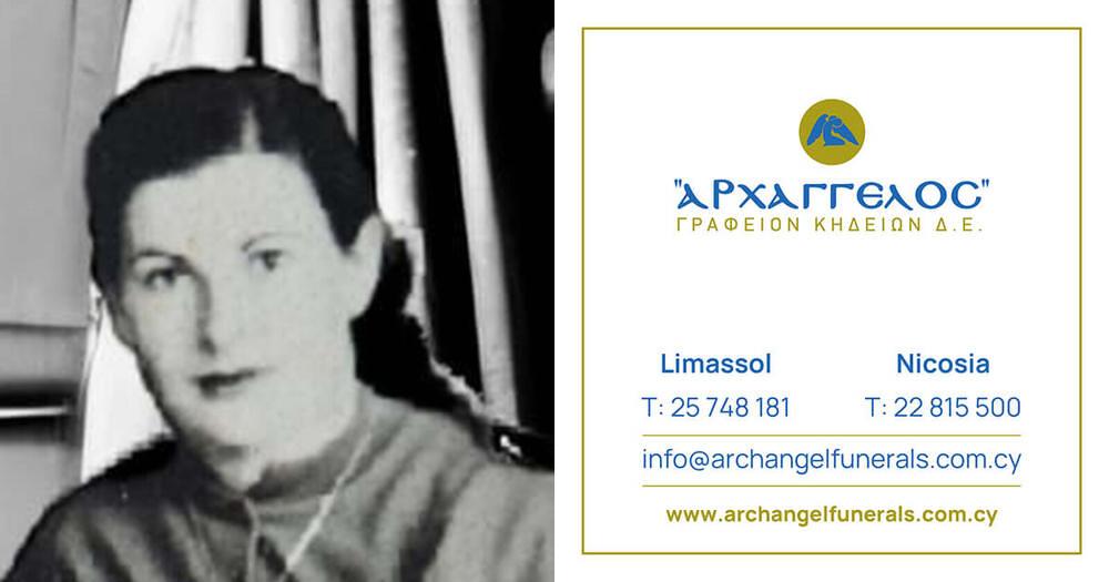που απεβίωσε στις 26.10.2025 σε ηλικία 96 ετών κηδεύουμε την Πέμπτη 30.10.2025 και ώρα 2:00 μ.μ. από τον Ιερό Ναό Απ.Ανδρέα Χαράκη στη Λεμεσό και καλούμε όσους τιμούν τη μνήμη της να παραστούν.