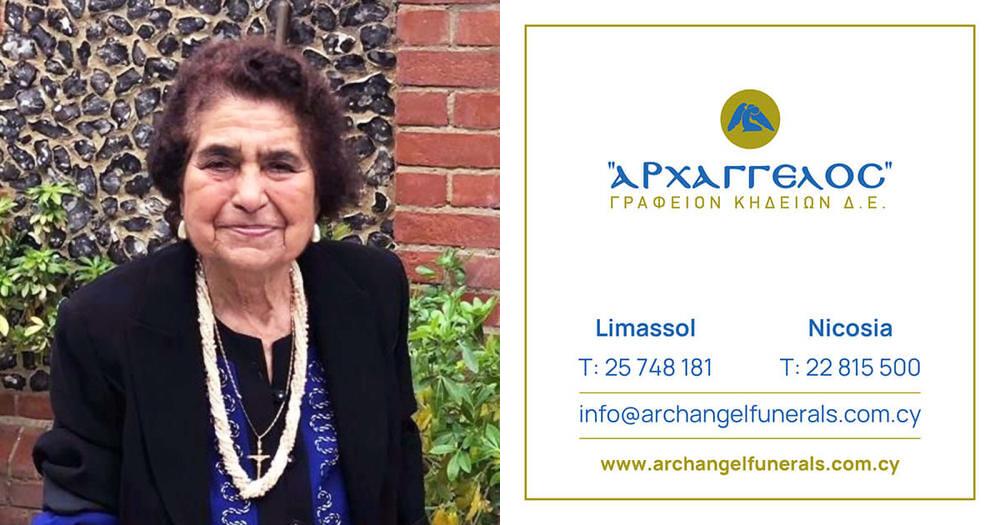 που απεβίωσε την Κυριακή 9.6.2024, κηδεύουμε την Τρίτη 11.6. 2024 και ώρα 10:00 π.μ. από τον Ιερό Ναό Αγίου Νεκταρίου στη Λεμεσό και καλούμε όσους τιμούν τη μνήμη της να παραστούν. Η ταφή θα γίνει στο κοιμητήριο Σφαλαγγιώτισας
