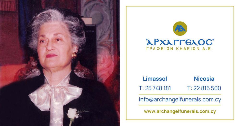που απεβίωσε την Κυριακή 16.03.2025,σε ηλικία 87 ετών, κηδεύουμε την Πέμπτη 20.03.2025 και ώρα 2:00 μ.μ. από τον Ιερό Ναό Αγίου Κοσμά του Αιτωλού στη Λεμεσό και καλούμε όσους τιμούν τη μνήμη της να παραστούν.
