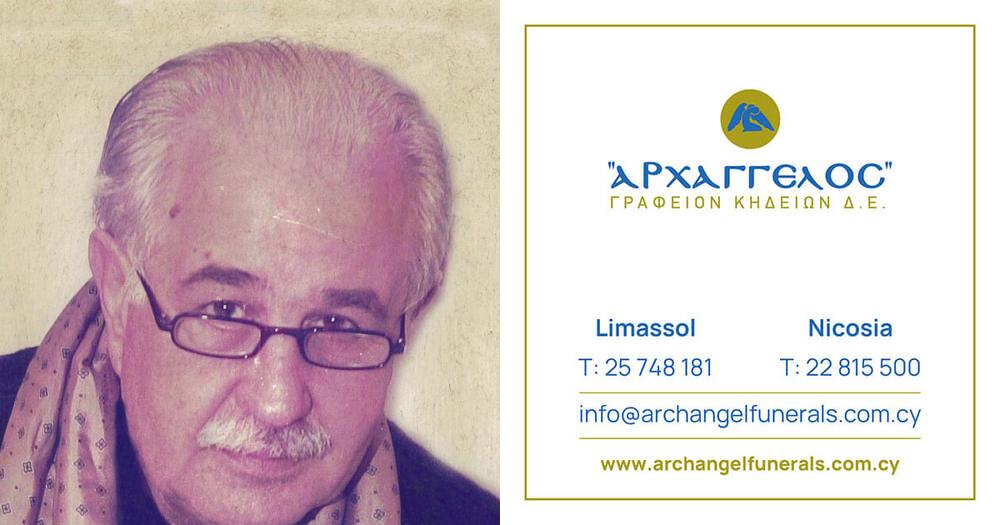 που απεβίωσε στις 4.1.2024, κηδεύουμε τη Δευτέρα 8.1.2024 και ώρα 11:00 π.μ από τον Ιερό Ναό Αγίου Αρσενίου στη Λεμεσό και καλούμε όσους τιμούν τη μνήμη του να παραστούν.