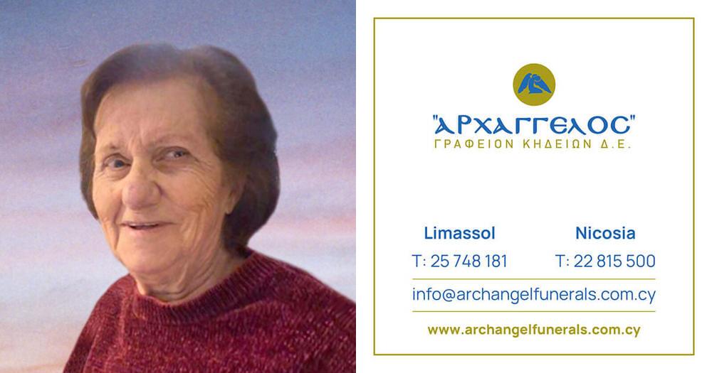 που απεβίωσε το Σαββατο 21.06.2025, σε ηλικία 87 ετών, κηδεύουμε την Τρίτη 24.06.2025 και ώρα 10:00 π.μ. από τον Ιερό Ναό Αγίου Νικολάου στη Λεμεσό και καλούμε όσους τιμούν τη μνήμη της να παραστούν.