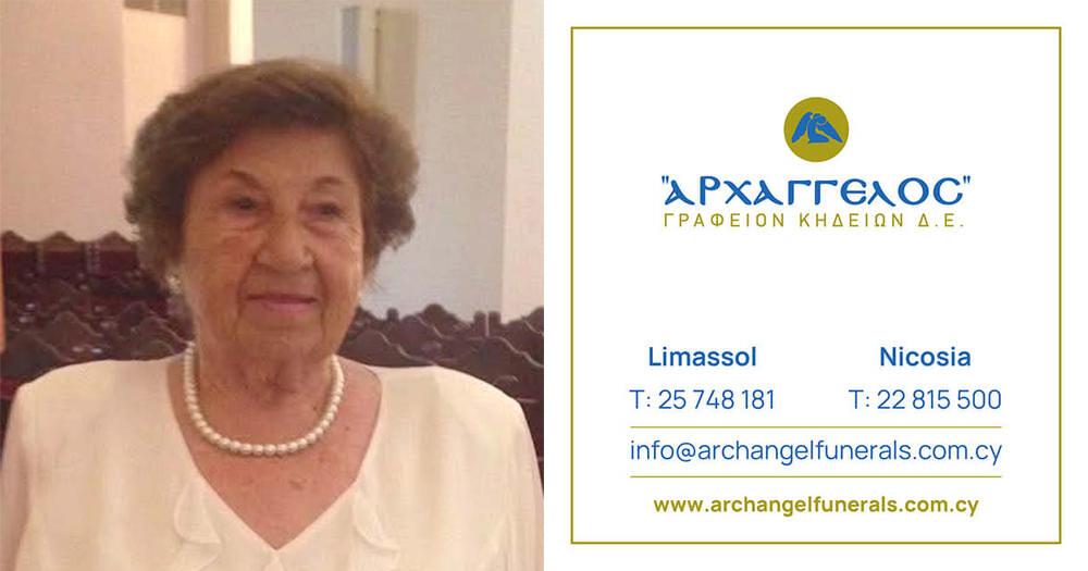 που απεβίωσε στις 23.04.2026, σε ηλικία 95 ετών, κηδεύουμε τη Δευτέρα 27.04.2026 και ώρα 1:00 μ.μ. από τον Ιερό Ναό Αγίου Νικολάου στη Λεμεσό και καλούμε όλους όσους τιμούν τη μνήμη της να παραστούν.