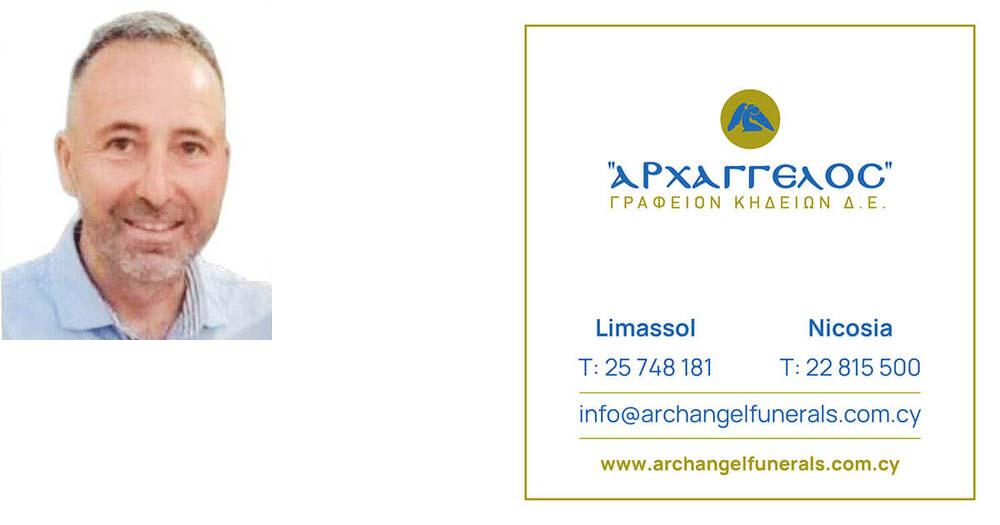 που απεβίωσε την Τρίτη 02.04.2024, σε ηλικία 54 ετών, κηδεύουμε την Πέμπτη 04.04.2024 και ώρα 12:30 μ.μ. από τον Ιερό Ναό Αγίου Κοσμά του Αιτωλού στη Λεμεσό και καλούμε όσους τιμούν τη μνήμη του να παραστούν.