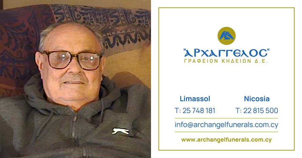 που απεβίωσε την Δευτέρα 03.06.2024, σε ηλικία 80 ετών, κηδεύουμε την Πέμπτη 06.06.2024 και ώρα 12:30 μ.μ. από τον Ιερό Ναό Αγίου Κοσμά του Αιτωλού (κοιμητήριο Σφαλαγγιώτισσας) στη Λεμεσό και καλούμε όσους τιμούν τη μνήμη του να παραστούν.