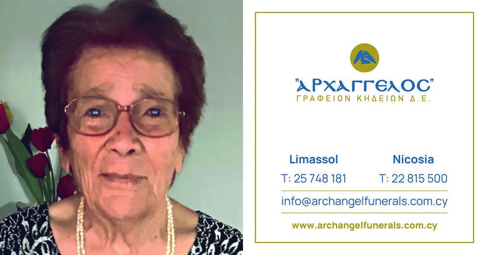 που απεβίωσε την Κυριακή 31.08.2025, σε ηλικία 98 ετών, κηδεύουμε την Τρίτη 02.09.2025 και ώρα 4:00 μ.μ. από τον Ιερό Απ.Ανδρέα στο Πλατύ Αγλαντζιάς και καλούμε όσους τιμούν τη μνήμη της να παραστούν.