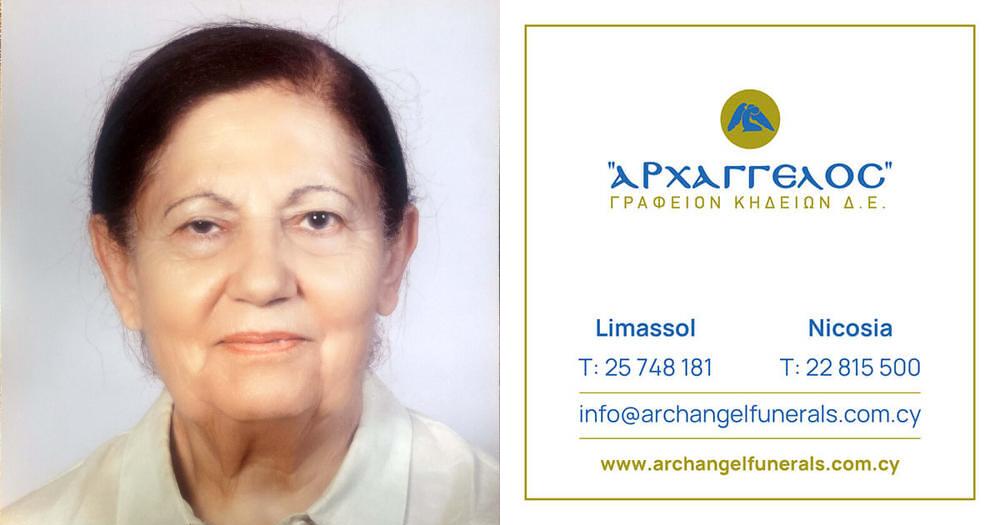 που απεβίωσε στις 28.02.2025, σε ηλικία 89 ετών, κηδεύουμε την Τετάρτη 05.03.2025 και ώρα 1:00 μ.μ από τον Ιερό Ναό Αγίου Νικολάου στη Λεμεσό και καλούμε όσους τιμούν τη μνήμη της να παραστούν.
