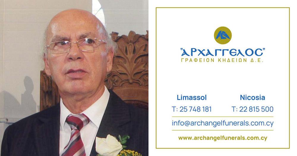 που απεβίωσε στις 01.01.2025, σε ηλικία 78 ετών, κηδεύουμε την Παρασκευή 03.01.2025 και ώρα 1:00 μ.μ. από τον Ιερό Ναό Αγίας Βαρβάρας στο Ζακάκι στη Λεμεσό και καλούμε όσους τιμούν τη μνήμη του να παραστούν.