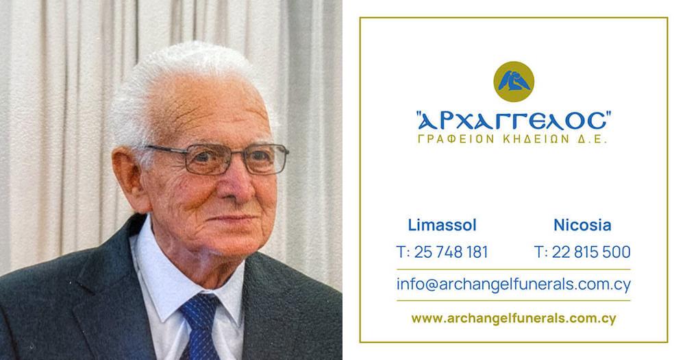 που απεβίωσε τη Δευτέρα 04.11.2024, σε ηλικία 88 ετών, κηδεύουμε την Τετάρτη 06.11.2024 και ώρα 3:00 μ.μ. από τον Ιερό Ναό Αγίων Κωνσταντίνου και Ελένης στη Λευκωσία και καλούμε όσους τιμούν τη μνήμη του να παραστούν.