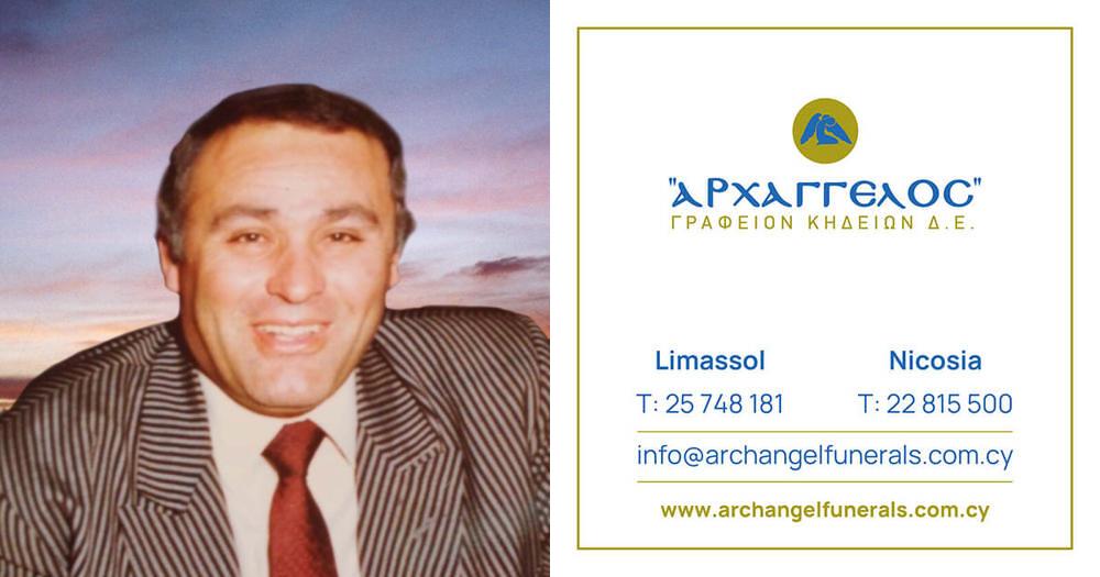 που απεβίωσε την Δευτέρα 24.06.2024, σε ηλικία 74 ετών, κηδεύουμε την Πέμπτη 27.6.2024 και ώρα 10:00 π.μ από τον Ιερό Ναό Αγίου Νικολάου στη Λεμεσό και καλούμε όσους τιμούν τη μνήμη του να παραστούν.