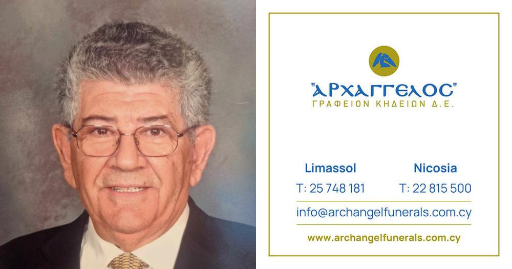 που απεβίωσε την Κυριακή 23.06.2024, σε ηλικία 86 ετών, κηδεύουμε την Τετάρτη 26.06.2024 και ώρα 5:00 μ.μ. από τον Ιερό Ναό Αγίων Κωνσταντίνου και Ελένης στη Λευκωσία και καλούμε όσους τιμούν τη μνήμη του να παραστούν.