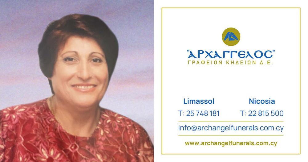 που απεβίωσε τη Δευτέρα 10.6.2024 σε ηλικία 77 ετών, κηδεύουμε τη Τετάρτη 12.6.2024 και ώρα 2:00 μ.μ. απο τον Ιερό Ναό Αγίας Βαρβάρας στο Ζακάκι και καλούμε όσους τιμούν τη μνήμη της να παραστούν.